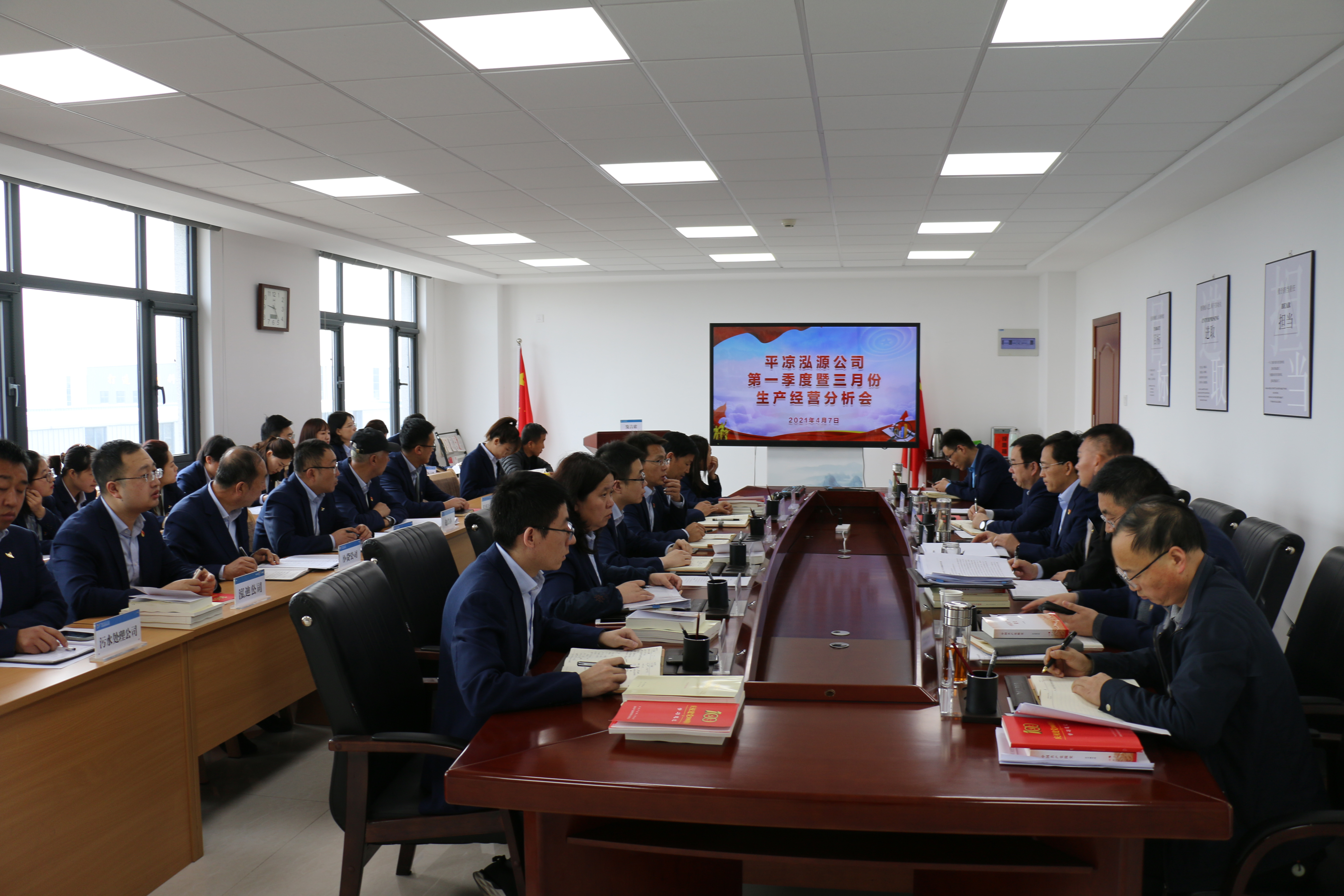 2021-04-074月7日,泓源公司召开一季度暨三月份生产经营分析会,听取下属各公司一季度主要经营指标完成情况,分析形势,指出问题,安排部署二季度生产经营重点任务。会议指出,一季度,下属各公司按照公司的整体安排,紧盯年度目标任务,加压奋进,攻坚克难,生产经营指标完成较