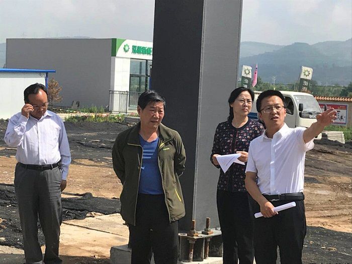 2018-06-226月21日,市政协副主席禹文长一行调研平凉过境车辆综合服务中心一期(平凉市中心充电站)项目建设情况,平凉泓源公司副总经理裴林虎陪同。在施工现场,裴林虎就项目一期概况、在建工程进度和项目建成后的产业模式以及项目二期规划和发展方向等向禹文长做了全面介绍,